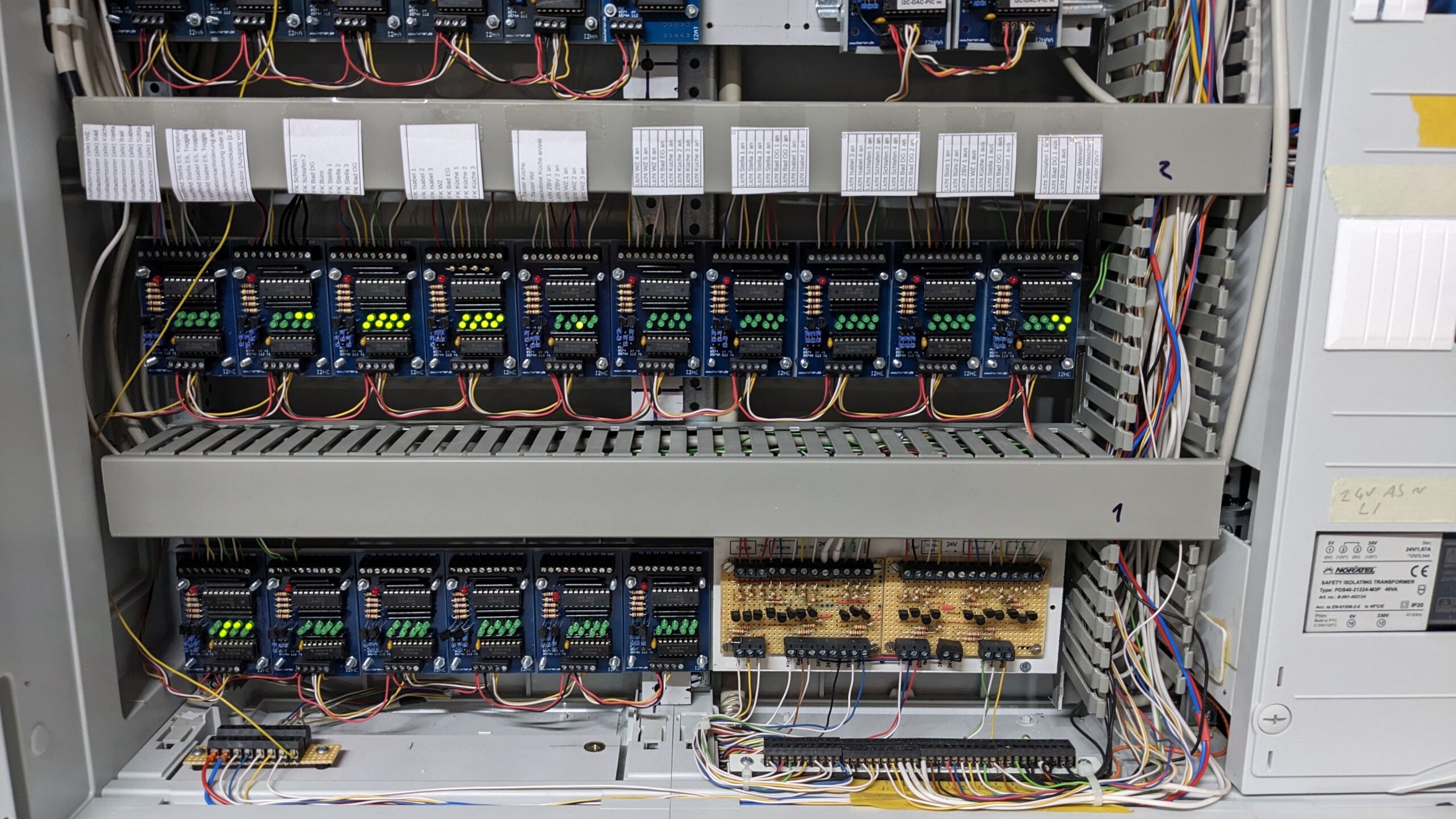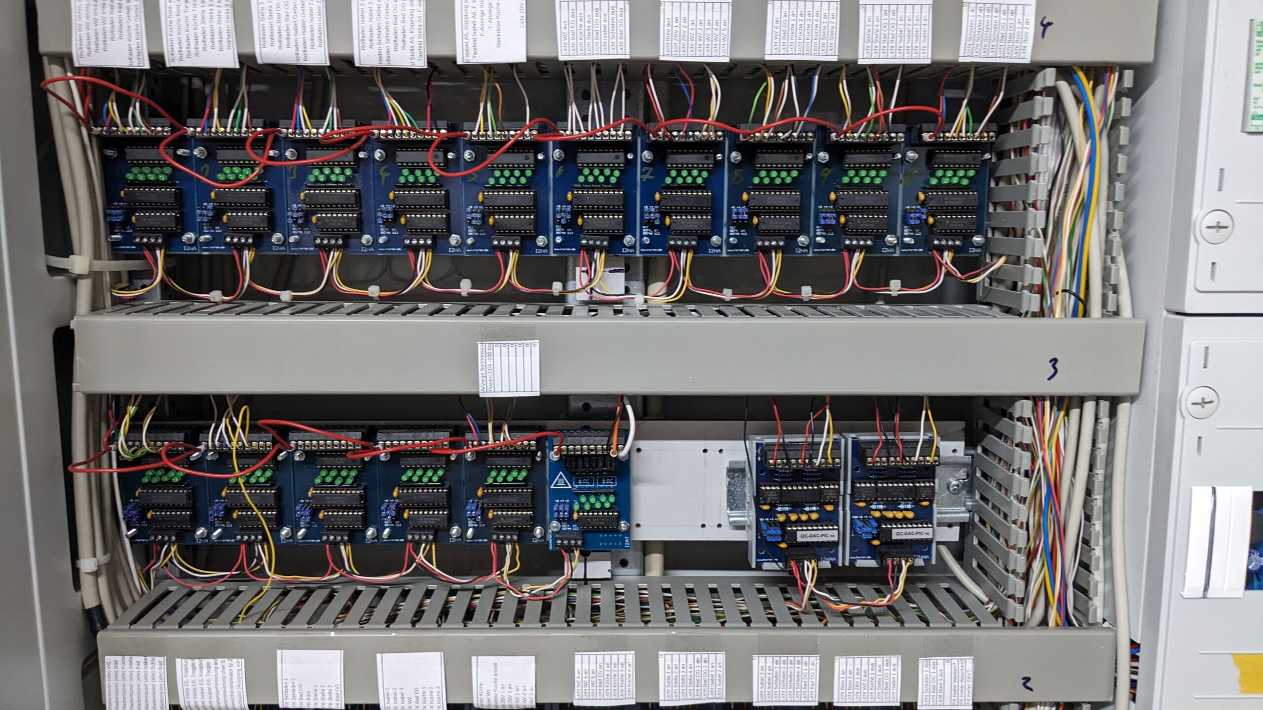 Über 16 digitale Ausgangskarten, die ebenfalls über einen Multiplexer angeschlossen sind, werden die Aktoren im Haus geschaltet.