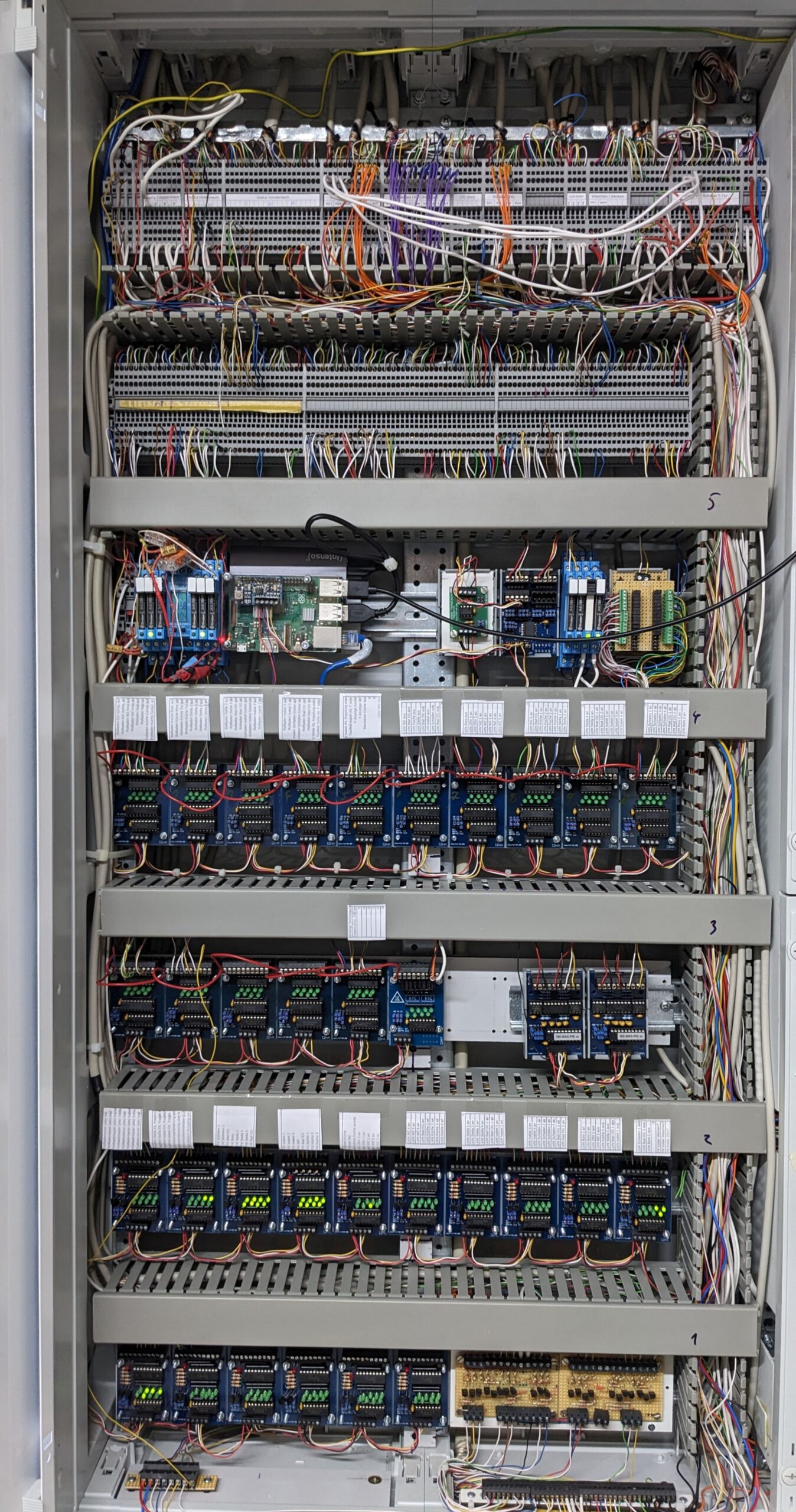 Im Schaltschrank laufen alle Fäden zusammen: Hier befinden sich Raspberry Pi, I²C-Module und die gesamte Steuerungstechnik der Anlage.